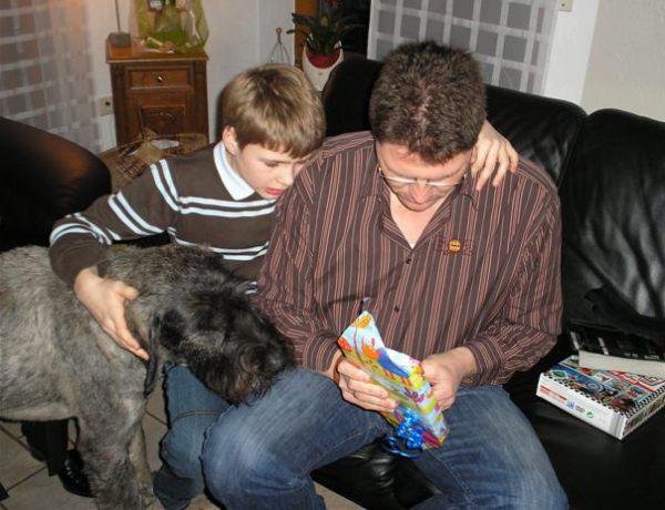 Buddys Herrchen schreibt: "Anbei einige Fotos von Buddy am Heiligen Abend. Er ist ein prächtiger Kerl und macht uns viel Freude. Ich schaue ... immer wieder gerne auf Ihre Internetseite und verfolge sehr interessiert, daß auch Buddys Geschwister sich super entwickeln und die Menschen zufrieden mit Ihren Vierbeinern sind und umgekehrt."
