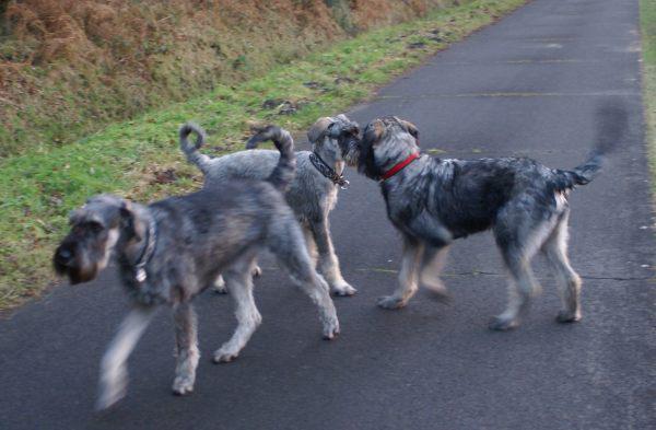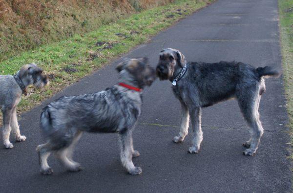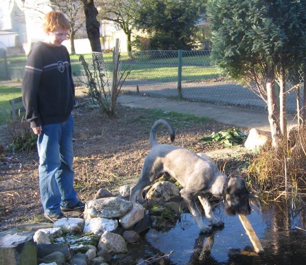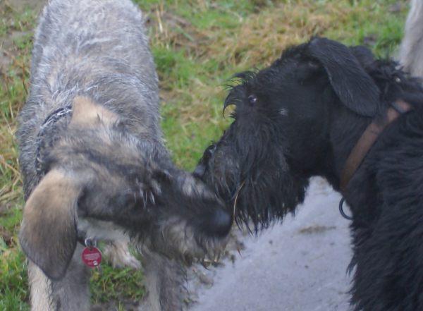 Wir haben Gina besucht. Die Wiedersehensfreude war riesig – auf beiden Seiten. Ein tolles Riesenmädchen ist sie schon geworden! Leider hat das Wetter so gar nicht mitgespielt. Im Nu waren Hunde, Menschen und die Fotokamera naß wie ein Waschlappen. Deswegen hier nur ein kleines Foto von den beiden Schwestern. Alle anderen sind nicht zu gebrauchen. Schade!