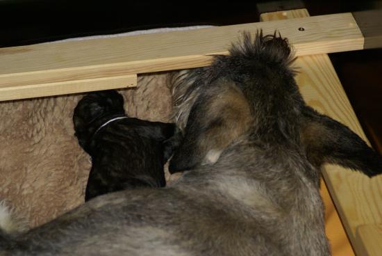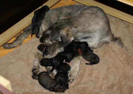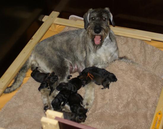 Auch sie ist, wie Ihre Mama Janne, eine instinktsichere Hündin und hat alles ganz alleine geschafft. Es ist immer wieder ein großes Wunder, woher die Tiere wissen, was zu tun ist. Ais putzt eifrig und hält einen großen Milchvorrat für die hungrigen Mäuler bereit. Sie ist nur sehr schwer von den Kleinen wegzubewegen. Eine stolze, rührend sorgende Mama!