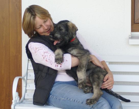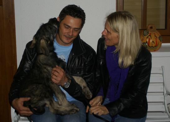 Heute waren Berg-Ahorns neue Menschen zu Besuch. Wie man sieht, war es Liebe auf den ersten Blick auf beiden Seiten. Am Abend fuhr Berg-Ahorn, der nun Lupo gerufen wird, schon mit seinem Herrchen und Frauchen ins Hotel, von wo aus sie in aller Frühe in Richtung Heimat, dem schönen Kärnten in Österreich, starten werden. Wir freuen uns ausgesprochen, daß Frauchen mit Lupo auch auf Ausstellungen laufen will und Herrchen aus dem jungen Mann einen tollen Begleithund im wahrsten Sinne des Wortes machen will. Lupo, du Schöner, auch dir wünschen wir ganz viel Glück und Erfolg und ein langes, gesundes Leben!