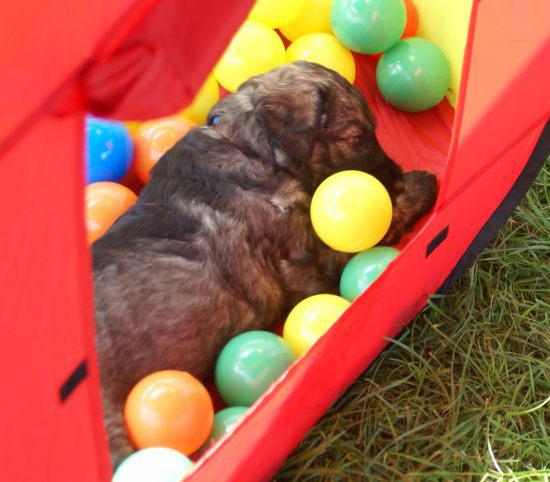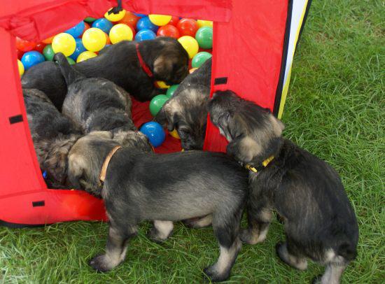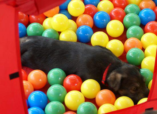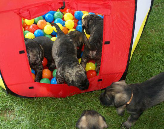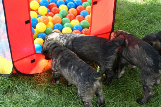 Nachdem die Kleinen sich gestern sehr unerschrocken gezeigt und, als Frauchen laut mit zwei leeren Küchenpapierrollen aufeinander geschlagen hat, sich mutig auf diese gestürzt haben, lernten sie heute das Bällebad kennen. Auch hier siegte die Neugier, und es wurde lustig hindurch marschiert.