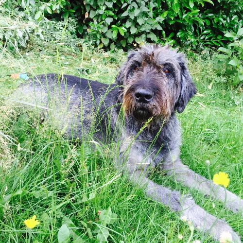 Matos Herrchen schickt ein ganz aktuelles Foto und schreibt dazu u.a.: „Ihm geht’s sehr gut und er ist – außer bei großer Hitze – top fit. Wir laufen jeden Tag durch den Wald und er genießt es herumzutollen. Und das in dem Alter!“