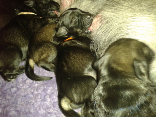 Im Zwinger Melina sind Jannes erste sieben Ur-Ur-Enkel geboren! Funny Lady Paula vom Eifelparadies, die Tochter von Bourbon-Vanille von der Janne, hat ihren ersten Wurf zur Welt gebracht. Es ist 2015 der einzige Pfeffiriesenwurf in der gesamten Schweiz. Die Mama ist sogar gekört, was in der Schweiz noch anspruchsvoller ist als in Deutschland! Wir gratulieren herzlich zu diesem Wurf und wünschen von Herzen alles Gute! "Bliibet gsund!“