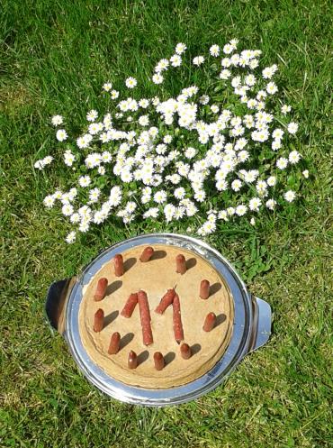 Jannes elfter Geburtstag! Selbstverständlich mußte der gebührend gefeiert werden, mit allem, was dazugehört: Ein Leber-Salami-Kuchen und ein schickes neues Geschirr mit dem Namen „Squirrel – Eichhörnchen“ sind das Mindeste! Herzlichen Glückwunsch, meine Schöne – Grande Dame – Clown – Brummbär! Auf daß Du noch ganz lange die Eichhörnchen im Wald auf die Bäume schickst! Am Vortag noch bist du mit Wonne Deinem Steckenpferd nachgegangen: Einmal durch die Röhre im Wald und zurück! Wir sind so dankbar, daß Du bei uns bist! Bleib' gesund und fit, so daß wir noch viele lange Wanderungen mit Dir machen können! Behalte Deinen herrlichen Dickkopf, der letztlich doch immer zum großmütigen Einlenken bereit ist.