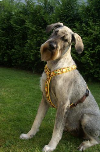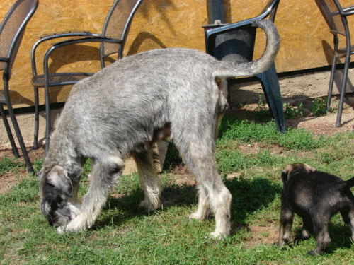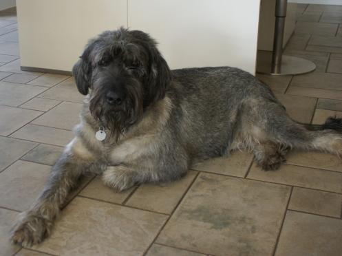 Frauchen und Herrchen wundern sich, daß er – entgegen seiner sonstigen Gepflogenheit – überhaupt keinen Laut von sich gibt, als ich an der Tür stehe. Die treue Seele scheint ihre Züchterin schon draußen an der Stimme erkannt zu haben. Nach intensiver Schnupperkontrolle an meiner „Hundejacke“ (Duft von Mama und Schwester?) wird dann deutlich eine Knuddeleinheit eingefordert... Aktuellen Erkenntnissen zufolge ist leider auch bei den Riesenschnauzern die Krankheit DCM ein nicht von der Hand zu weisendes Thema. Deswegen haben wir bei Buddy einen Abstrich von der Mundschleimhaut genommen und werden es zur Untersuchung an die Universität Columbia, Missouri, USA, schicken, bevor Buddy zur Zucht eingesetzt wird. Selbstverständlich geben wir das Ergebnis dann auch hier bekannt. Dieser schrecklichen Krankheit kann man nur mit absoluter Offenlegung Einhalt gebieten.