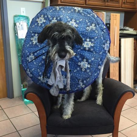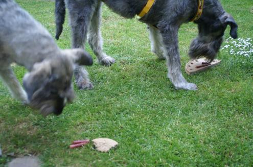 Habanero und Hank sind wohlauf. Aber die beiden Racker haben im Wald Glasflaschen gefunden, und Hank hat sich einen 5 cm langen Schnitt am Bein zugezogen. Dieser wurde genäht. Wir empfehlen Zinkoxidpulver in die Wunde zu streuen, natürlich nicht lecken lassen, und wünschen gute Besserung! „They are perfect except for a 5cm cut on Hanks leg from the two boys finding glass bottles somewhere in the woods. The subcutaneous stitches are fine by the ones on the outer skin will not hold!“