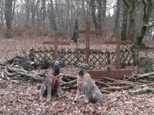 eingerichteter Hasenfriedhof! Hier ruhen laut Kreuzinschrift
