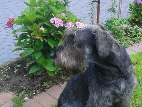 Sommerliche Fotogrüße von Wilhelm! Frauchen schreibt u.a.: "Wilhelm geht es sehr gut. Er passt auf uns alle auf und grummelt, sobald jemand unserem Haus zu nahe kommt...“