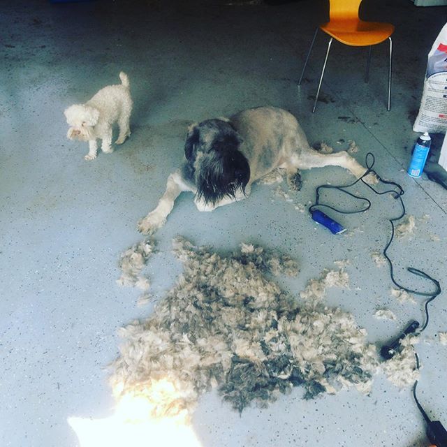 In Virginia hat bereits der Frühling Einzug gehalten. Frauchen bepflanzt eifrig die Blumenkübel und Obi erhält, wie sein Freund Booboo, einen Sommerhaarschnitt.
