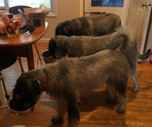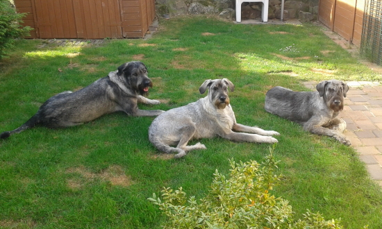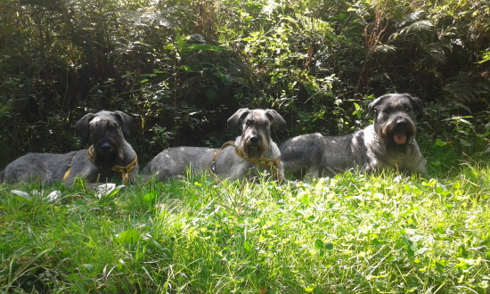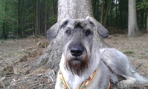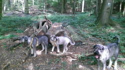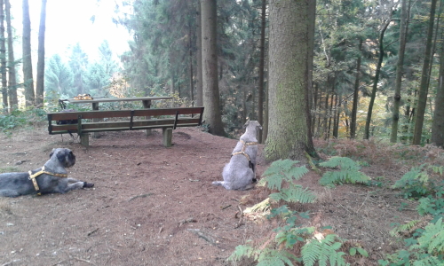 Was für ein wunderschöner Tag! Wilhelm und sein Frauchen besuchen Mami Ais und Großmama Janne! Es ist ein strahlender Spätsommertag. Gemeinsam wandern drei Hunde-Generationen mit ihren Menschen durch den Teutoburger Wald. Wilhelm ist wirklich ein Prachtbursche, gebarft, durchtrainiert bis auf den letzten Muskel, stahlhartes Haar. Es ist eine wahre Wonne, die drei bei ihrer Begrüßung, beim Wandern und Spielen zu beobachten. Nach dem ausgiebigen Spaziergang rund um die Große Egge, vorbei an zahmen Lamas und wilden Rehen, gab es für die Hundis Futter am Auto und für die Menschen später eine Stärkung auf der Terrasse des Rossini, von wo aus man einen schönen Blick über das Wichlinghausener Tal hat. Leider geht auch der schönste Tag mal zu Ende, und nach einer Tasse Kaffee im Garten von Wilhelms Kindheit, hieß es wieder Abschied nehmen voneinander. Kommt bald wieder! Kurze