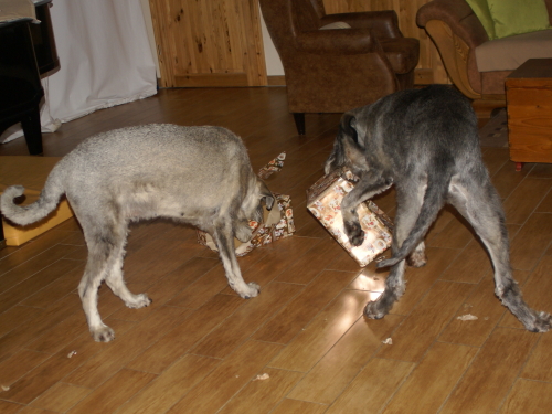 Mit Alaska pflegt unsere Ais – quasi alter idem – einen regen, herzlichen Email-Kontakt, welchen wir heute ausnahmsweise mal vollständig wiedergeben wollen, so schön ist er: "Hallo liebe Ais, endlich scheint mal wieder die Sonne. Im Anhang sende ich Dir zwei Bilder von mir. Nach neun Jahren sehen wir wirklich nicht aus oder? Ja, ab 15. Juli dürfen wir wieder frei laufen, warten wir schon sehnsüchtig drauf. Am liebsten laufe ich ganz normal, toben macht auch Spaß, aber nicht mehr so ausdauernd. Wenn ich allerdings Tiere sehe bin ich richtig flott, mein Gehör ist dann auf Durchzug gestellt, sehr zum Leidwesen meiner Menschen. Aber so lange hinterher laufen wie früher geht nicht mehr. Blitz und Donner sind leider im Moment sehr viel unterwegs. Leckere Fischstückchen habe ich zu meinem Geburtstag bekommen, Fisch esse ich für mein Leben gern. Der Kleine bekommt selbstverständlich auch was ab!!!! Aber nicht zu viel. Jetzt wünschen wir Euch allen ein schönes sonniges Wochenende. Bis zum nächsten Mal ganz herzliche Grüße von Deiner Alaska mit Anhang“