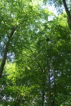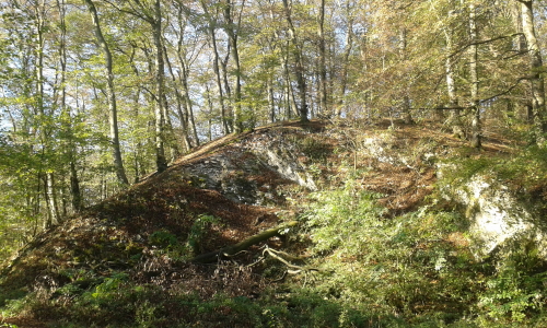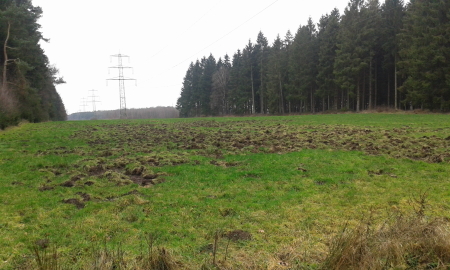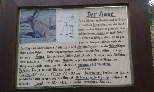Wir spazieren auf der Südseite des Bergkammes in östliche Richtung, dann über den Berg und auf dem bekannten Steffenweg, der weit im letzten Jahrhundert auf Initiative des Großvaters des hiesigen Tierarztes Dr. Steffen als Waldwirtschaftsweg mit Betonplatten befestigt wurde, entlang des Glanebachs und auf einem Teilstück eines Waldlehrpfads, für dessen Studium man Stunden einplanen müßte, wieder zurück.
