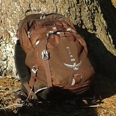 Frauchens Rucksack – den besten, den sie je hatte – von der Firma Osprey (= Fischadler) ist immer dabei.