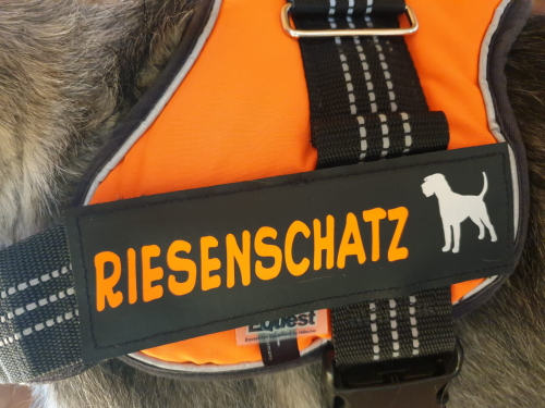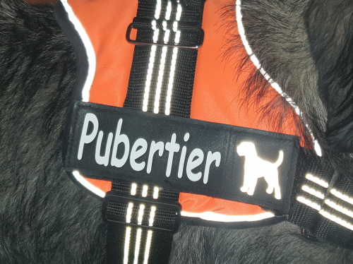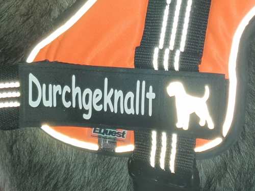Frauchen hat sich überlegt, daß die Energie, welche den Worten "DURCHGEKNALLT“ und "PUBERTIER“ innewohnt, einem konzentrierten Arbeiten vielleicht nicht gerade förderlich sein könnte. Deswegen gab es kurzerhand neue Logos für Laanis Trailgeschirr. Demnächst folgen noch welche mit programmatischem Inhalt... Vielleicht hilft es? Nachtrag: Obiges bitte nur so lesen, wie es gemeint ist, nämlich mit gaaanz viel Humor und Augenzwinkern...