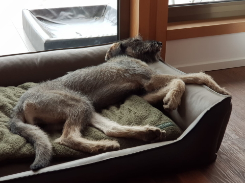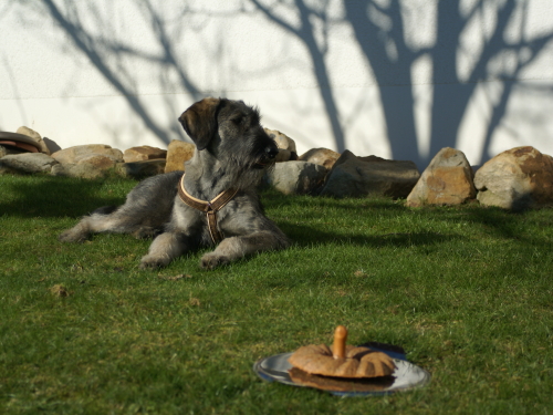 Noch ein letztes: ein müder Gruß von Oscar Wuf f Wie immer sind die Bilder von Oscar freigegeben. Es ist zwar nicht immer ganz einfach, seine Einwilligung, insbesondere für die Porträts, zu bekommen, aber Dank Leberwurst ist das schlussendlich kein Problem. |