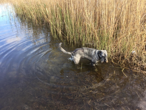 „Das liebt Oscar ... stundenlanges Schnüffeln auf weiter Flur, während unsereins sich die Beine in den Bauch steht ... aber was macht man nicht alles für sein Hundchen, und das Gute daran darf man natürlich auch nicht übersehen: man ist gezwungen alles auch langsamer anzugehen, so dass tatsächlich auch für einen selbst vieles wesentlich intensiver erlebbar ist .... das ist sehr, sehr schön‼“