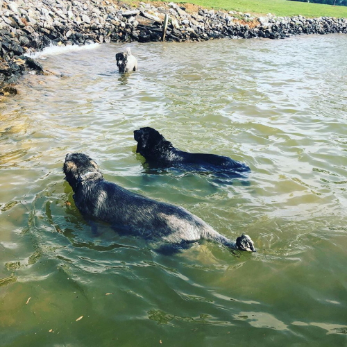 Bei Obi und seinen Neffen Hank und Habanero in Amerika ist es schon so warm, daß die Badesaison am wunderschönen Smith Mountain Lake eröffnet ist!