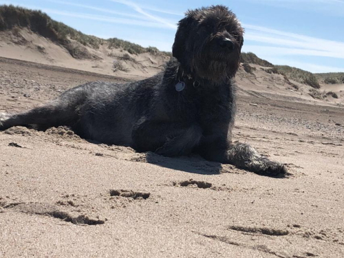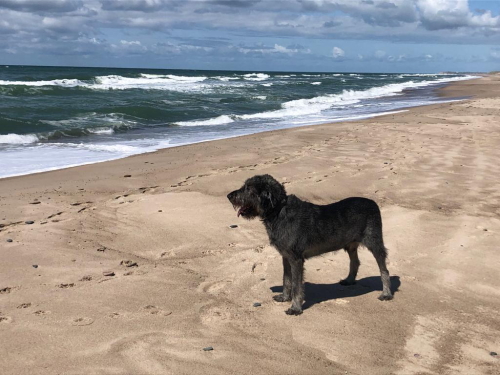Mato schickt "viele Grüße aus DK – Thorsminde. Mato genießt den Strand. Mittlerweile schon eher etwas geruhsamer als älterer Herr.“