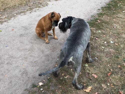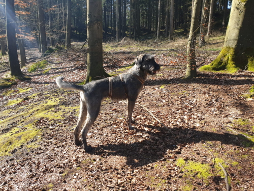 Hier mal wieder ein paar Fotos von unserer heutigen Beinahe-schon-Frühlings-Wanderung. Frauchen war wieder mal nicht zu bremsen mit der Knipserei. Sie wollte halt festhalten, wie eine fast schon zurecht gemachte Riesenschnauzerin aussehen kann, wenn sie in zweieinhalb Wochen ihren ersten Geburtstag feiern wird. Trotzdem bleibt noch viel zu tun. So wirklich abtrimmen getraut sich Frauchen Mitte Februar noch nicht ...