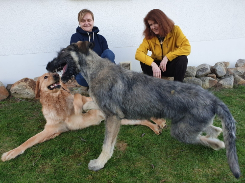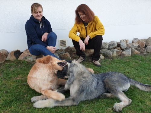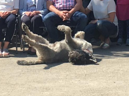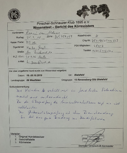 Eigentlich war es nur als Übung mit Spaßfaktor gedacht – und schwupps hatte Laani einen auf Anhieb bestandenen PSK (VDH) Wesenstest in der Tasche! Frauchen ist überglücklich und megastolz auf ihre coole Laani, die sich vollkommen unbeeindruckt zeigte von dichtem, lauten Menschengedränge, schmalen Sitzreihen, durch welche sie sich zwängen mußte, knisternden, wogenden Plastikplanen, über welche es zu laufen galt, sowie Autos, welche hupten, als sie gerade daran vorbeimarschierte und aus denen heraus Frauchen angesprochen wurde. Umweltreize, wie sie immer mal vorkommen können, und bei denen es sehr wertvoll ist, wenn Hundchen sich als nervenstark erweist.