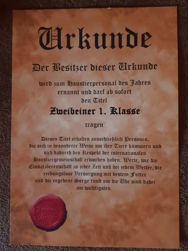 Frauchen lag unter anderem noch diese Urkunde und dieses Kissen
