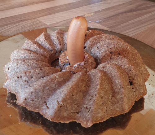 So sah er aus, der Buchweizen-Kokos-Kuchen mit der Würstchen-Kerze