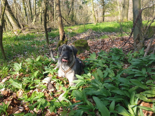Bärlauch so weit das Auge reicht! Sogar Laani leckt sich das Mäulchen, denn natürlich kommt davon auch etwas in ihre "Gemüsepampe“, zum Fleischmix ihrer BARF-Mahlzeit.