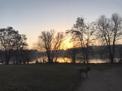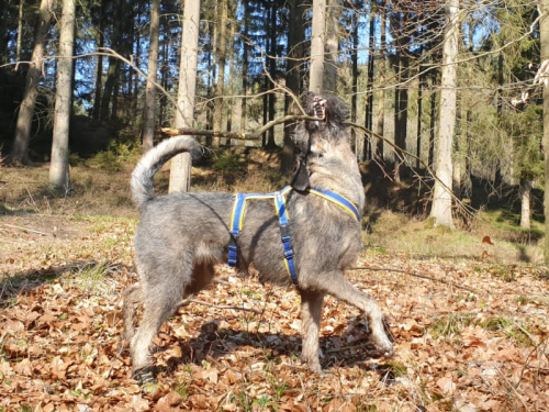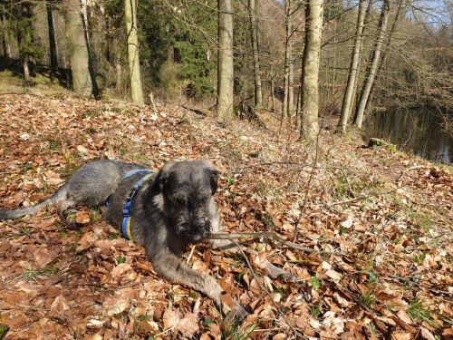 Strahlend blauer Himmel! Noch einmal zum Hermanns Teich, dank Corona.... Laani ist glücklich, wenn sie ein Stöckchen haben darf, was wegen der Verletzungsgefahr nicht oft vorkommt. Zu viele Hunde sind schon auf dem OP Tisch gelandet, weil sie sich beim Spielen einen Stock in den Rachen gerammt haben. Und bei unserer wilden Hummel muß man somit lieber vorsichtiger sein.