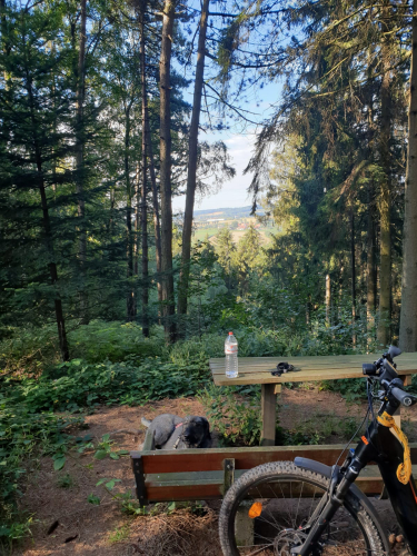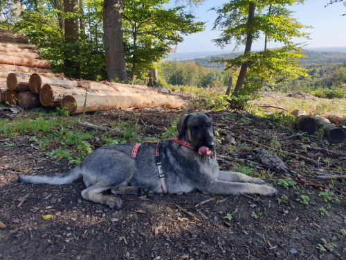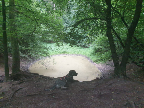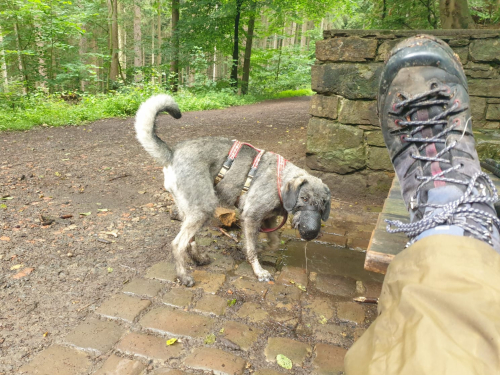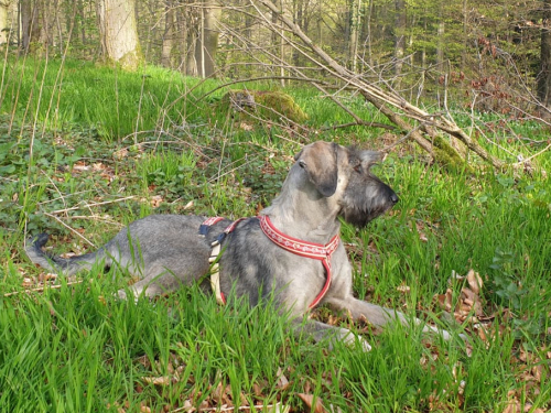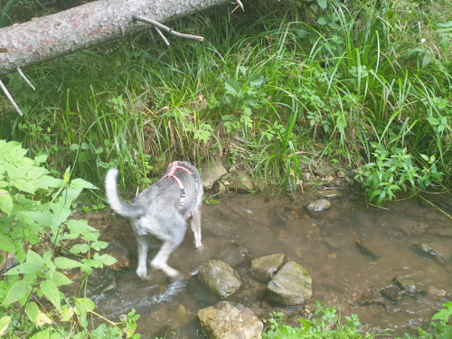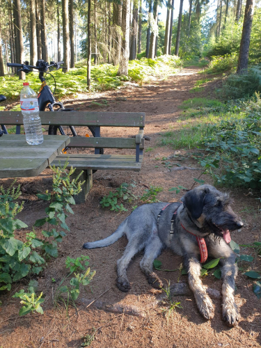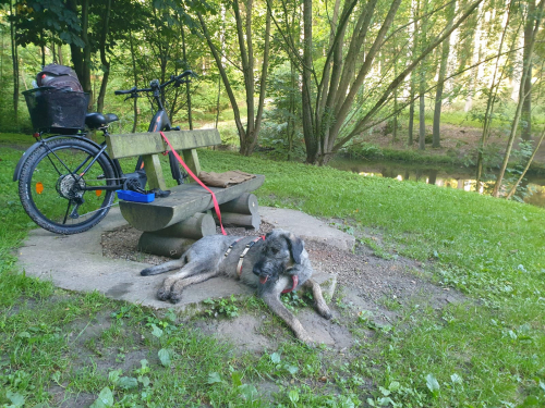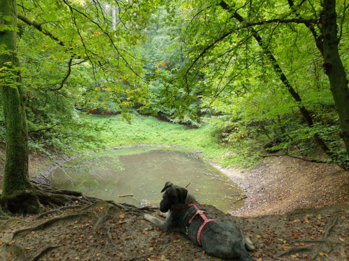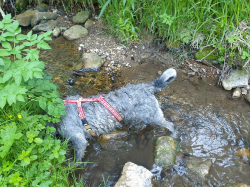 Frauchen wird faul. Oder alt. Oder beides. Hihi! Jedenfalls fand sie die Idee, die großen, meist vierstündigen Laani-Wanderungen sitzend zu absolvieren, mehr als verlockend. Gesagt, getan. Ein anständiges Mountainbike mußte her. Und Laani ist begeistert! Endlich geht es jetzt in angemessenem Riesenschnauzer-Tempo durch den Wald. Wobei Frauchen nicht vom „Klugsch...“ abzubringen ist, von wegen, der Hund ist ein Traber, und das gesunde Tempo eines Riesenschnauzers liegt bei 10-12 km/h usw… Hier eine kleine Auswahl an Bildern von unseren Touren der letzten Wochen durch den „Teuto“ und das Wiehengebirge... Abkühlung
