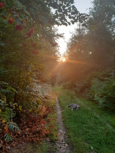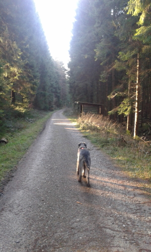Die Wetterprognose für heute hieß: Dauerregen. Der Blick ins Regenradar heute früh versprach: Es wird ein schöner Tag. Also fix die "sieben Sachen" packen und ab auf die Autobahn... In Bad Essen angekommen empfing uns strahlender Sonnenschein, und der begleitete uns die ganze Zeit bis wir nach fast vier Stunden Wanderung wieder beim Auto ankamen. Fotos sind auch entstanden, aber das schöne neue Geburtstagsgeschirr haben wir wohlweislich zu Hause gelassen, denn die Waldwege haben nach dem Regen der letzten Wochen Hundchen wie Frauchen in richtige Matschmonster verwandelt. "Anständige Fotos" stehen also noch auf der Agenda...