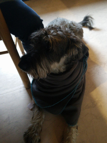 Sie hat ihn nicht gebraucht! Laani saß auf dem Sofa und machte ein Gesicht als wollte sie sagen: „Die spinnen, die Menschen“. Kein Hecheln, erhöhter Puls. Laani ist cool!