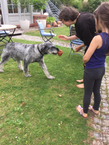 Yolanda besucht in den Schulferien ihre Freundin „Oma Asta“, wie sie inzwischen allenthalben liebevoll genannt wird. Viele Helfer, die jungen wilden Hundefreunde, die Kinder, halten Asta im 14. Lebensjahr immer noch fit.