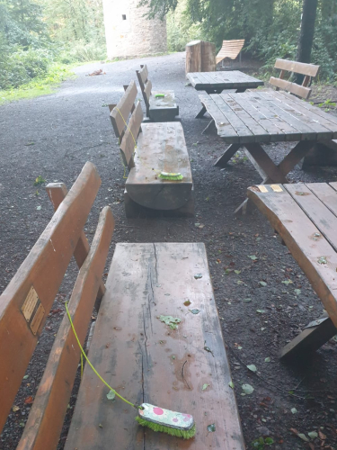 auf den Wanderwegen liegt eine Bürste, auch der Bismarckturm