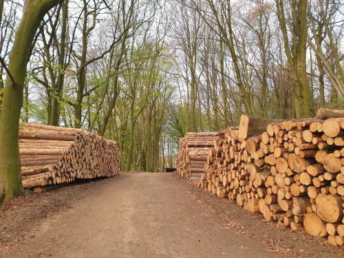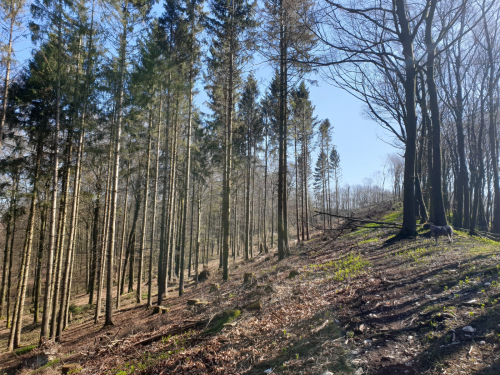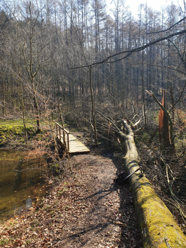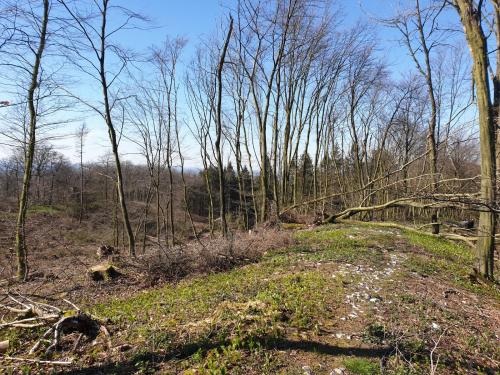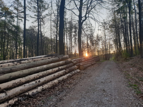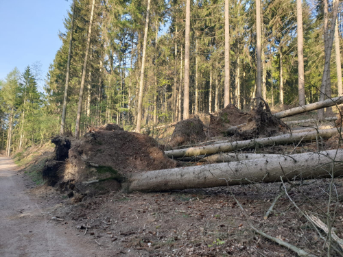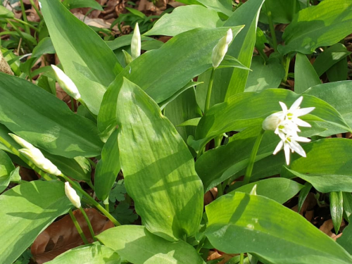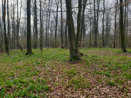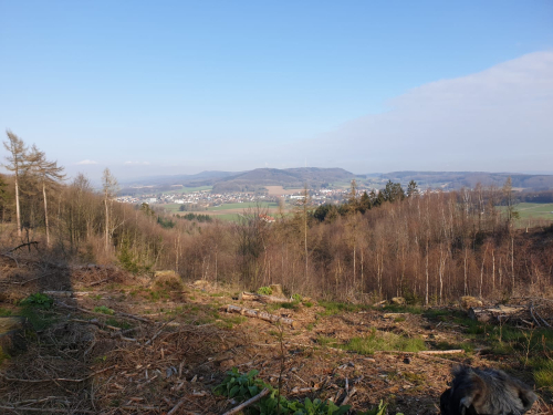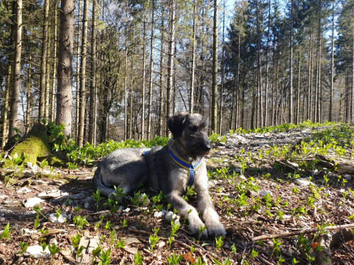 Wanderung über den Riesberg und den Barenberg bei Borgholzhausen. Man sieht viel Windbruch – ein Fest für den Borkenkäfer... Wir ernten den ersten Bärlauch. Lecker und gesund für Mensch und Hund!.