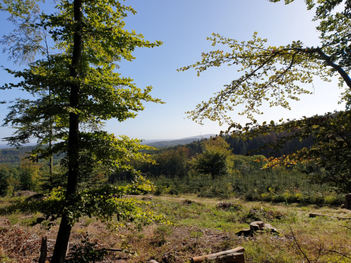Über den Großen und Kleinen Kellenberg. Blick auf Meesdorf.