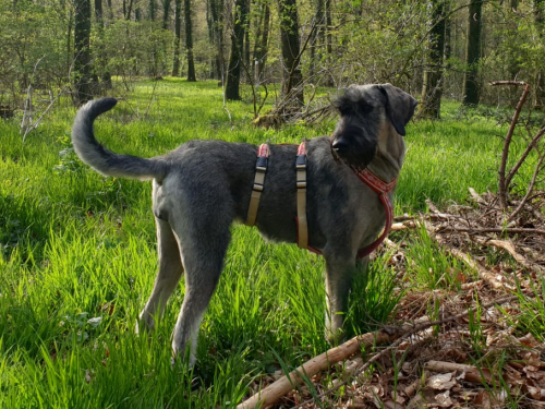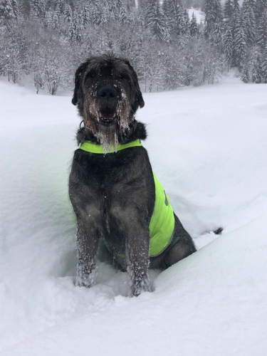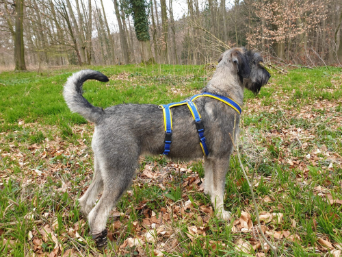 Heute war ein aufregender Tag! Laani hat ihre Zuchtzulassungsprüfung wiederholt. Nachdem sie letztes Jahr mangels Masse (Laani war noch ein "schlaksiger Teenager") durchgefallen war, galt heute top oder flopp, denn lebenslang sind nur zwei Versuche erlaubt. Die Richterin, Frau Roloff, war uns sehr wohl gesonnen. Natürlich bemerkte sie Laanis helle Augen und ihre Neigung zum Paßgang, wenn Frauchen zu langsam läuft, aber vor allem lobte sie ihre außergewöhnlich massive Vorbrust, woran es leider bei den "Pfeffiriesen" gerne mal mangelt. "Substanzvoll", "hartes Haar" – das liest man gerne im Richterbericht. Somit brauchen wir "nur" noch zwei Ausstellungsergebnisse mit mindestens "SG" (sehr gut), denn die Hüfte ist geröngt (Ergebnis A2), der Wesenstest und die Phänotypbeurteilung ist bestanden, Blut für das DNA Profil ist abgegeben und der freiwillige Gentest auf DCM (vererbbare Herzkrankheit) und auf PRA (Vererbbare Augenkrankheit) – Laani ist frei von beidem – sind erledigt. Mal sehen, wann wir an einer Ausstellung teilnehmen können. Viele PSK Ortsgruppen richten wegen Corona bis auf weiteres keine Ausstellung aus. Nun, wir werden die Zeit nutzen, um unsere Präsentation zu verbessern, dann eines ist sicher, nicht immer werden wir auf eine so nette und wohlwollende Richterin treffen wie heute, die der Zucht von Herzen zugetan ist, auch bei Rassen, die nicht jeder kennt (sie selbst züchtet weiße Zwergschnauzer) ... |