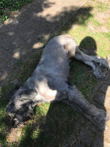 Warum muss es gleich wieder so heiß werden. Das ist doch nichts für Schnauzer vor ihrem 13. Geburtstag. Liebe Grüße aus Der Uckermark von Asta- Agile und ihren Menschen