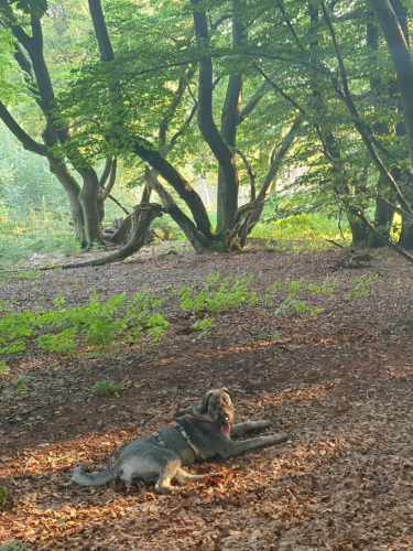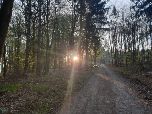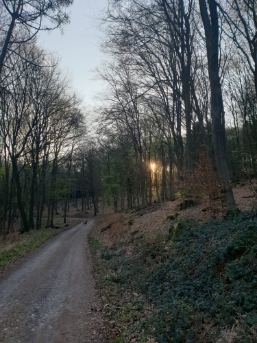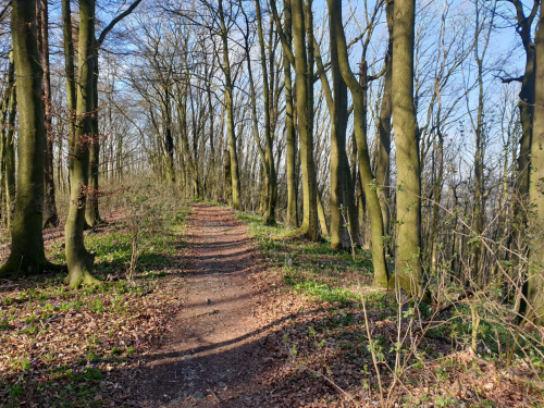 Viereinhalb Stunden Wanderung über den Großen Freden und den Spannbrink. Der Lerchensporn beginnt zu blühen. Wenn er seine volle Pracht entfaltet hat, werden wir dort nicht mehr gehen, denn dann flüchten wir vor der absoluten Leinenpflicht, die in Niedersachsen vom 1. April bis 15. Juli gilt. Da Laani stets super abrufbar ist, wandern wir dann nur noch in NRW...
