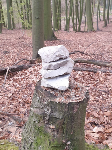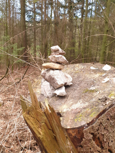 „Morgens um (halb) Sieben“ …der Wald ist hübsch ordentlich aufgeräumt … rätselhafte Steinmännchen säumen den Weg … vorbei am Hexenhäuschen (lieber nicht klopfen) … Tiere mit den sanftesten Augen der Welt … der Bärlauch beginnt zu blühen … Laani … „Seespiegel“ …