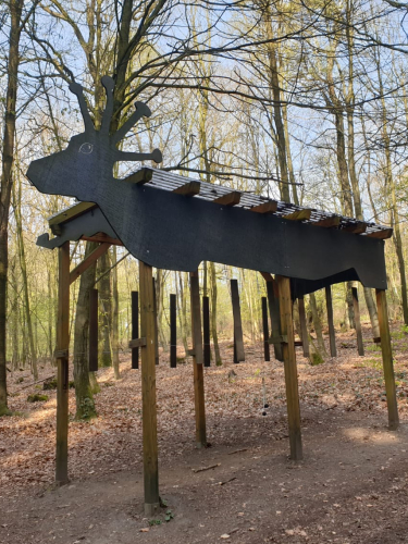 Mitten im Wald: Landesgrenze (Vorderpfoten in Niedersachesen, Hinterläufe in NRW)