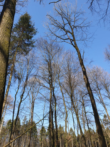 „Morgens um Sieben ist die Welt noch in Ordnung“ (wer kennt dieses Buch?), Abmarsch an der Kahlen Wart hin zu der berühmten Quelle, an der wir bislang immer köstliches Wasser getrunken und abgefüllt haben... Welch traurige Überraschung! Wir arbeiten die Enttäuschung ab mit einem steilen Aufstieg zum Wartturm. So langsam füllt sich der Wald mit Menschen. Also nix wie nach Hause, dreieinhalb Stunden sind genug. Wir fliehen vor den Corona-Flüchtlingen...