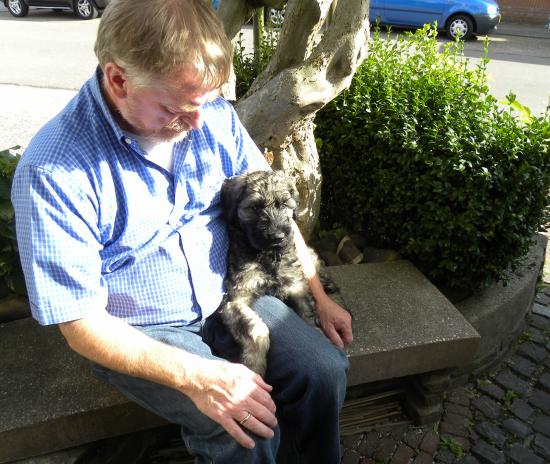 Heute waren Berg-Ahorns neue Menschen zu Besuch. Wie man sieht, war es Liebe auf den ersten Blick auf beiden Seiten. Am Abend fuhr Berg-Ahorn, der nun Lupo gerufen wird, schon mit seinem Herrchen und Frauchen ins Hotel, von wo aus sie in aller Frühe in Richtung Heimat, dem schönen Kärnten in Österreich, starten werden. Wir freuen uns ausgesprochen, daß Frauchen mit Lupo auch auf Ausstellungen laufen will und Herrchen aus dem jungen Mann einen tollen Begleithund im wahrsten Sinne des Wortes machen will. Lupo, du Schöner, auch dir wünschen wir ganz viel Glück und Erfolg und ein langes, gesundes Leben!
